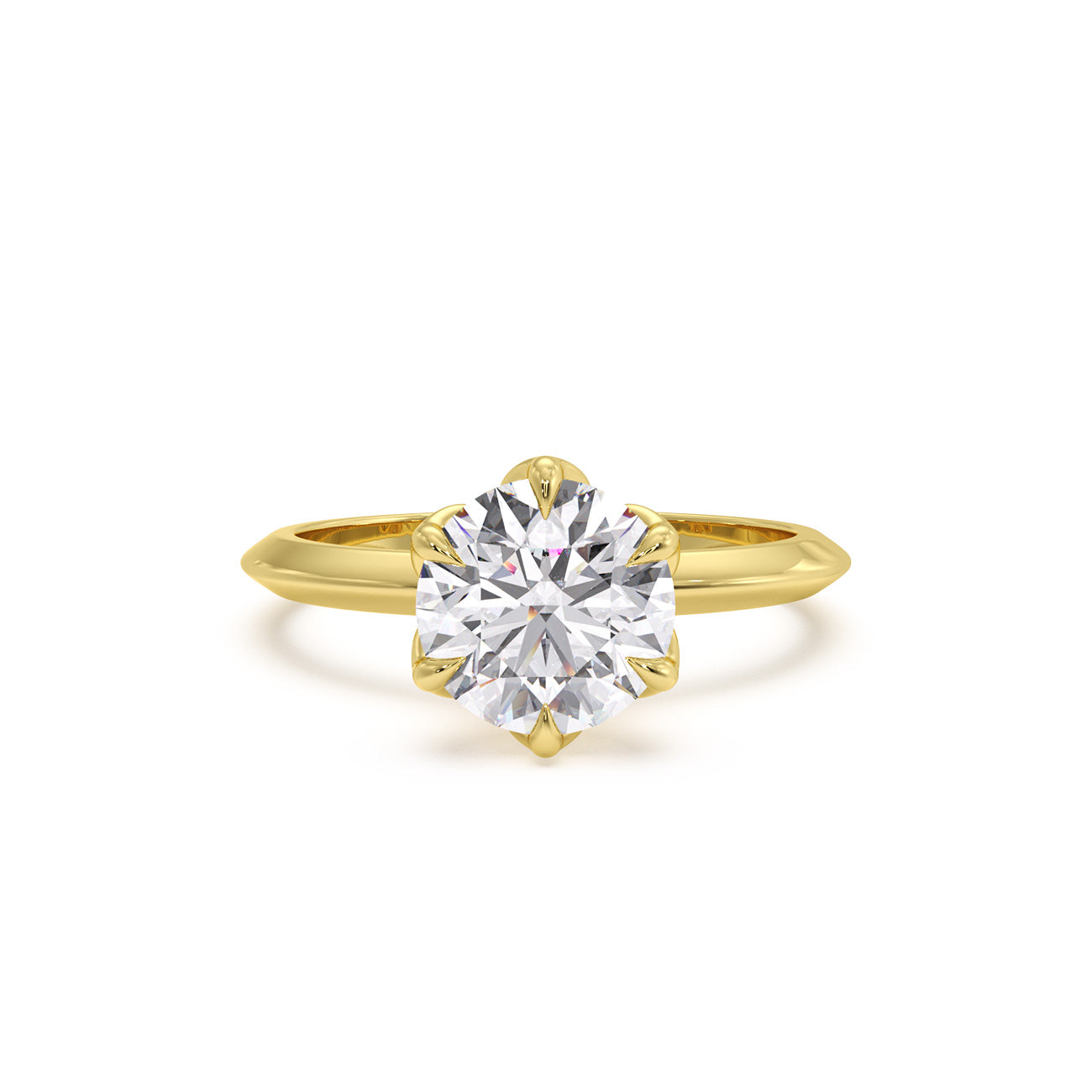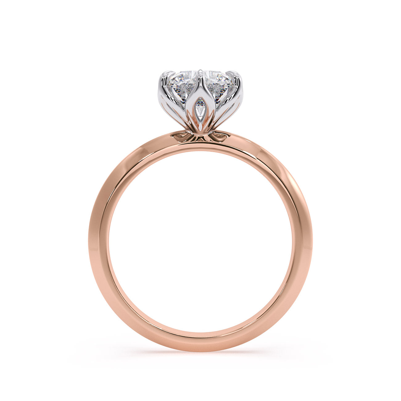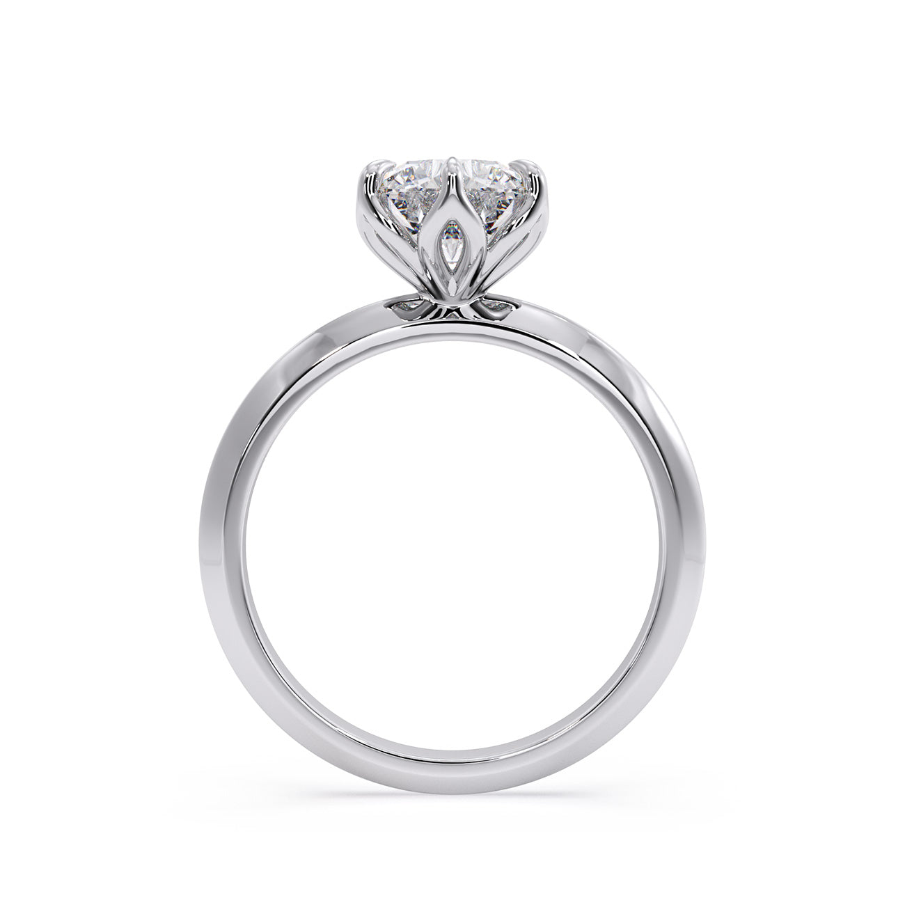 Azura presents a charming solitaire engagement ring distinguished by its uniquely feminine tulip design and a knife-edge band. Held by six delicate eagle-tipped claws, the breathtaking centre stone is showcased atop a sleek band, exuding elegance from every angle.