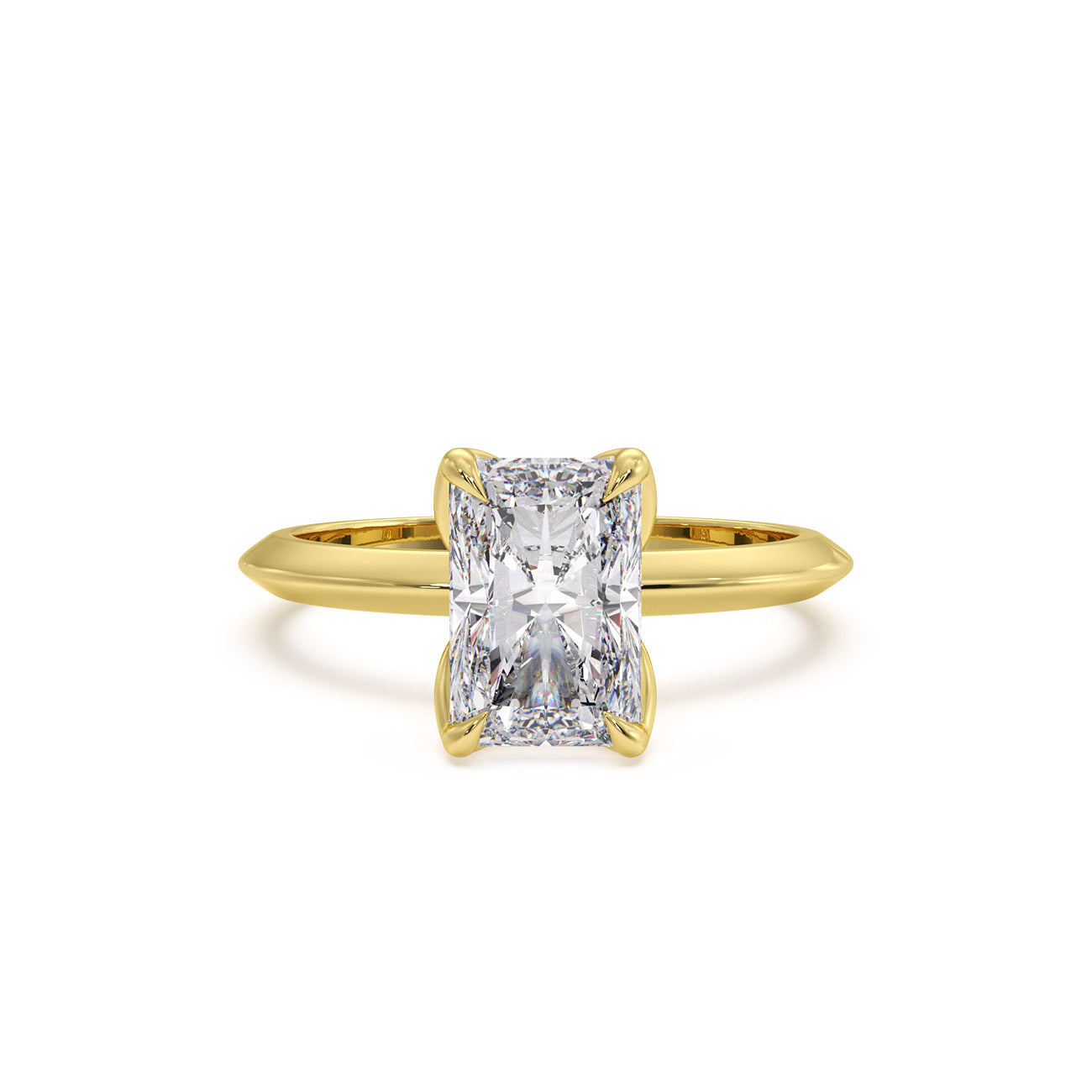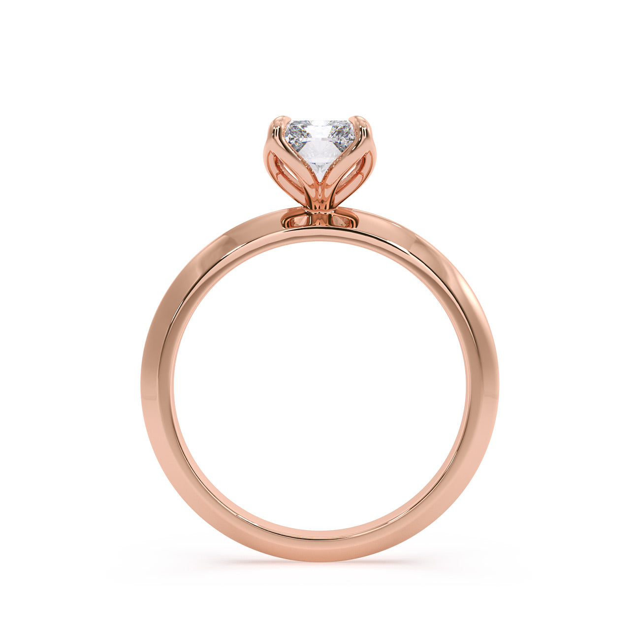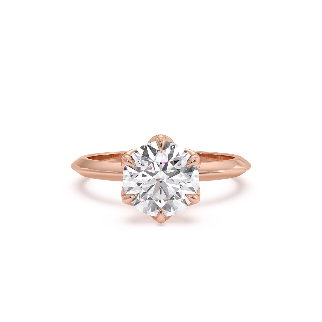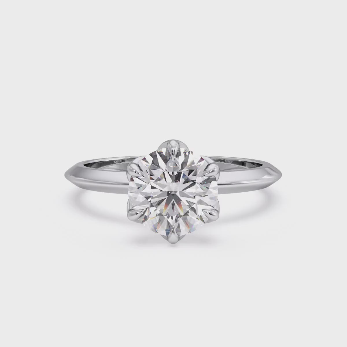 Azura presents a charming solitaire engagement ring distinguished by its uniquely feminine tulip design and a knife-edge band. Held by six delicate eagle-tipped claws, the breathtaking centre stone is showcased atop a sleek band, exuding elegance from every angle.