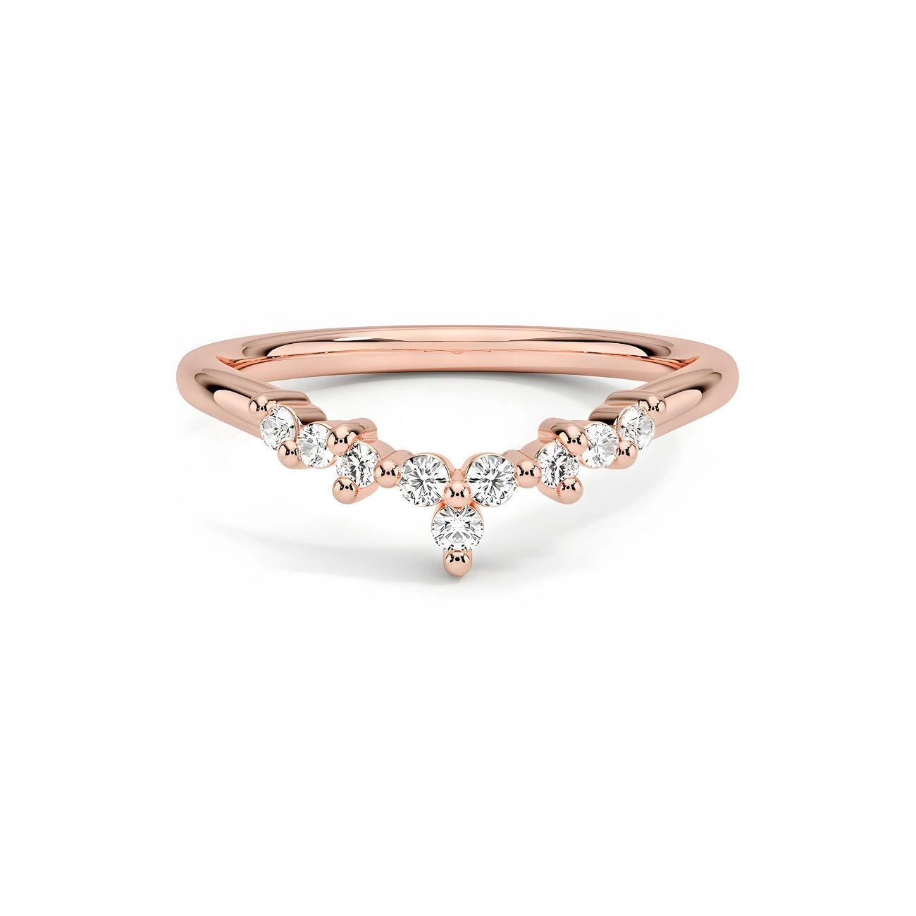 Helen is a stunning curved wedding ring designed to elegantly complement your engagement ring. Adorned with four 2.5mm brilliant cut stones set on a 2mm band and a total carat weight of 0.4ct.