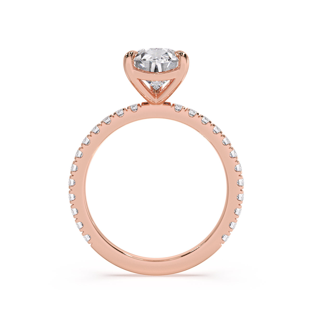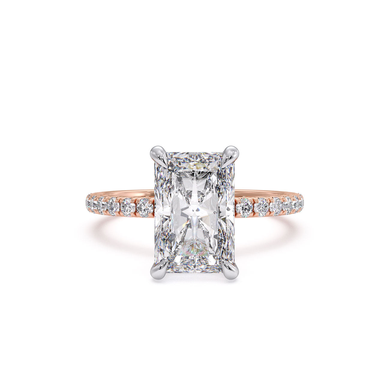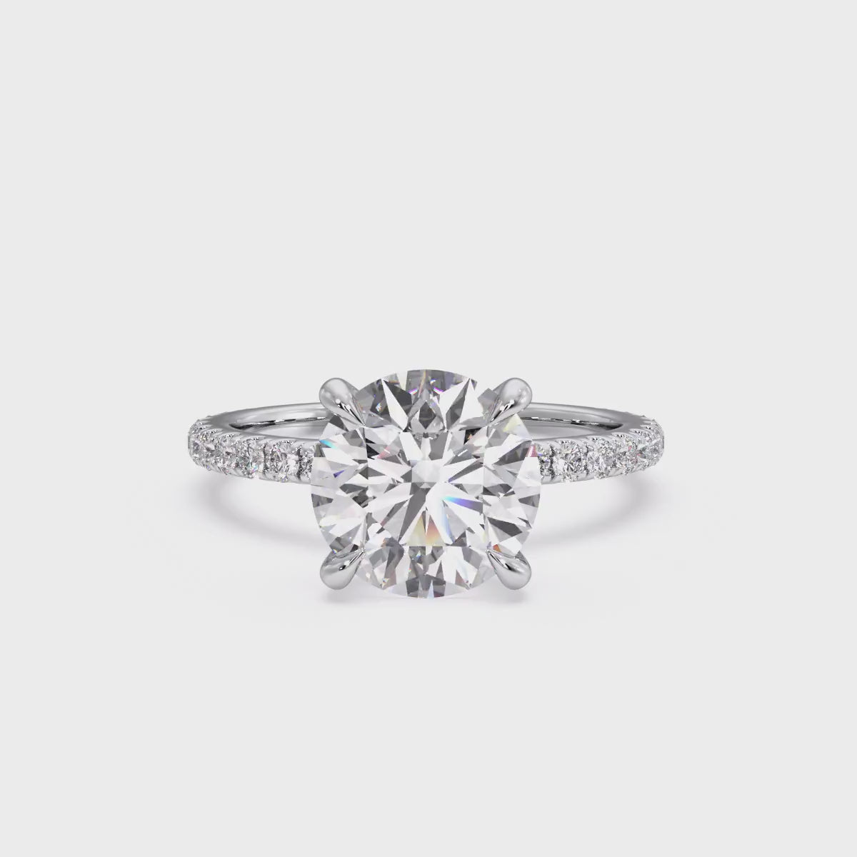Exuding timeless beauty, Zara stands as our iconic 4-claw pavé solitaire, celebrated for its enduring popularity. This remarkable design makes a striking statement on the finger while facilitating a seamless fit with the wedding band. Zara showcases the centre stone elegantly positioned on a pavé-adorned band, adding an extra layer of sophistication.